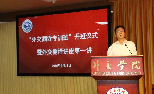 开班仪式结束后,张建敏司长做了外交翻译讲座第一讲“外交翻译概论”,对外交翻译人员需要具备的素质、翻译司的历史沿革、理念创新、人才培养和考录渠道等进行了介绍,之后与孙宁处长一起回答了师生的提问。