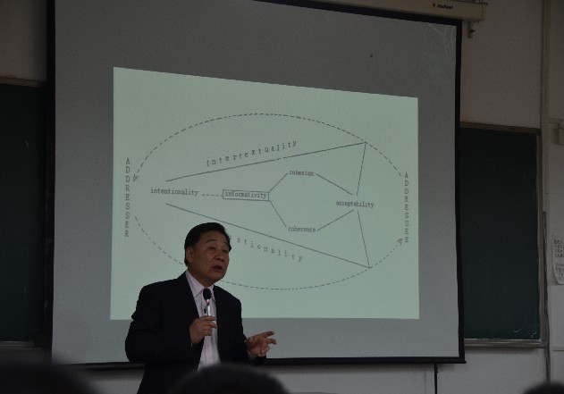 2012年10月30日下午,英语系邀请清华大学博士生导师罗选民教授,在展览路校区主楼420教室为到场的师生们带来了一场精彩的讲座。本次讲座由英语系翻译教研室主任郭立秋副教授主持,主题为“阅读、写作与翻译的认知语篇模式”。