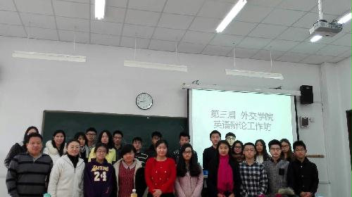 为激发学生参与英语辩论的兴趣,提高学生英语辩论水平,英语系在外交学院沙河校区分别于2015年12月12、13、20、27日共四天,举办了第三届英国议会制辩论工作坊。本次培训邀请到了著名辩手、世界大学生辩论赛中国区总代表陈聪作为主讲培训师。同时也邀请到了国内优秀辩手协助培训,他们是北京语言大学魏新月和东北亚辩论公开赛英语为外语组冠军、北京外国语大学的李曼祎。参加人员为外交学院英语辩论协会的20余名学生,英语系杨悦副教授、冉继军副教授和吉洁老师在工作坊的培训中进行了旁听指导。