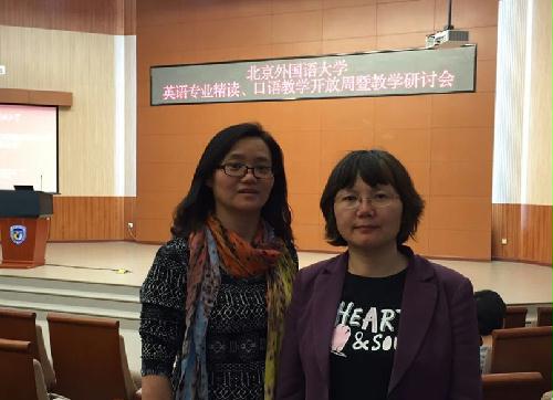 2016年5月16日至19日, 英语系精读课程负责人陆晓红、郑玉琼二位老师参加了北京地区高校英语类专业群、北京外国语大学、外语教学与研究出版社联合举办的“北京外国语大学英语专业精读、口语教学开放周暨教学研讨会”,与各位同行交流专业建设经验,探讨教学改革模式。