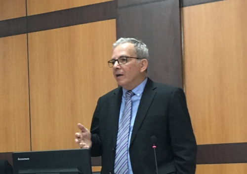 2016年10月11日上午,根据我院与以色列中以学术交流促进协会(SIGNAL)签订的合作谅解备忘录,以色列海法大学教授、著名能源政治、地理与外交政策学者阿维诺姆•伊丹博士(Dr. Avinoam Idan)应邀在沙河校区信息中心112同传教室为我院部分MTI研究生做讲座,讲座涵盖“从以色列的视角看一带一路”、“大中东地区局势及‘新冷战’”两个议题,由英语系张蕾副教授主持。