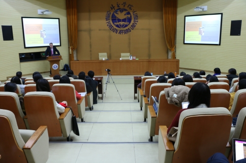 2017年12月20日,英国专家布莱恩·兰姆(Bryan Lamb)先生受英语系邀请访问外交学院沙河校区,并在沙河校区图书馆报告厅举办题为 《超越文字:一个英国人的视角》(More Than Just Words: An Englishman’s View)的讲座。讲座由英语系副主任许宏晨老师主持,英语系部分教师和本科、研究生同学参加。