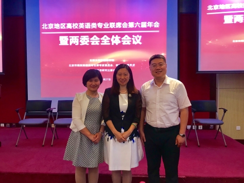 2018年5月27日,由北京地区高校英语类专业群主办、北京大学外国语学院承办、外语教学与研究出版社协办的“北京地区高校英语类专业联席会第六届年会暨英语类专业群两委会全体会议”在北京大学外国语学院举办。会议主题为“从‘教得好’到‘学得好’:英语类专业课堂教学创新研究”。我院英语系系主任石毅教授,系副主任许宏晨教授和语言文学教研室主任黄文红副教授参加了此次会议并进行了大会发言。