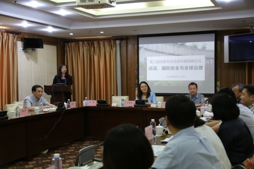 2019年6月15日,“话语、国际安全与全球治理研讨会暨第三届国家安全话语传播高峰论坛”在外交学院国际交流中心召开。该研讨会由外交学院世界政治话语研究中心、外交学院英语系和杭州师范大学当代中国话语研究院联合主办。来自外交学院、国防大学、中国社会科学院、中国政法大学、北京外国语大学、国际关系学院、国防科技大学国际关系学院、上海交通大学、杭州师范大学等国内高校和科研院所的专家学者40余人与会交流。