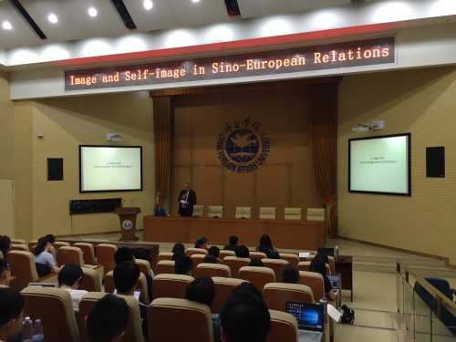 5月28日上午,汤契夫研究员在沙河校区图书馆报告厅为2016级英语系和外交学系本科学生举办了题为“中欧关系中的形象与自我形象”的学术讲座,由英语系何伟老师主持。讲座后,汤契夫研究员和同学们开展了有效互动,现场气氛活跃。