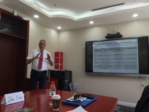 应英语系邀请,希腊国际经济关系研究院亚洲研究所所长普拉门•汤契夫(Plamen Tonchev)研究员于2019年5月26日至6月4日作为访问学者来到外交学院,与英语系教师开展学术研讨,为我院学生举办讲座,并与英语系积极探讨未来科研合作等事宜。