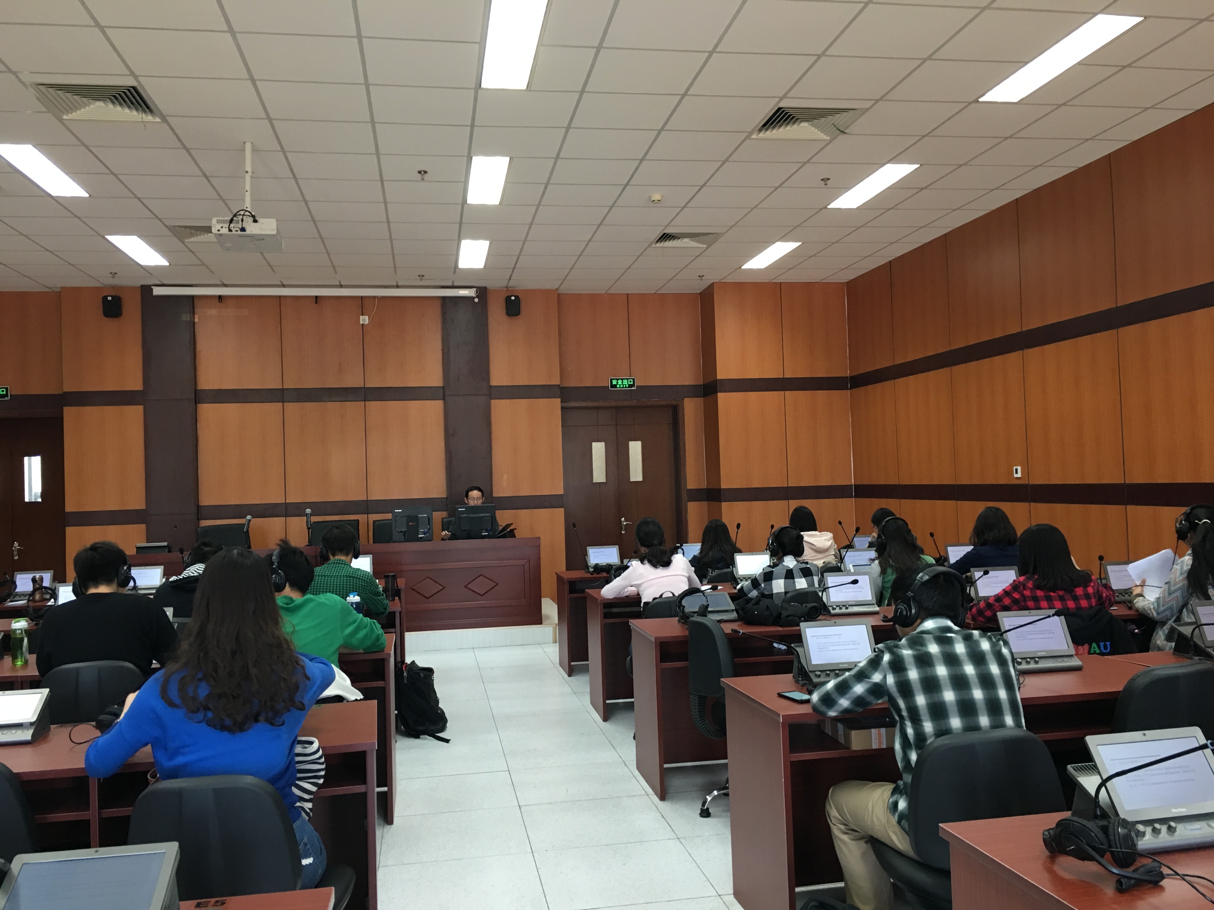 2016年4月20日下午,在英语系邀请下,职业译员卢信朝老师在外交学院沙河校区的同传教室为英语系的翻译专业学生带来了一场有关会议口译概况及其学习方法的讲座。卢信朝老师为多年的职业译员,并有着在中国科学院大学、北京外国语大学高翻学院授课的丰富经验。这次讲座围绕国际会议口译学习——译员和教师的双重视角展开,使同学们受益匪浅。讲座由英语系王振玲副教授主持。