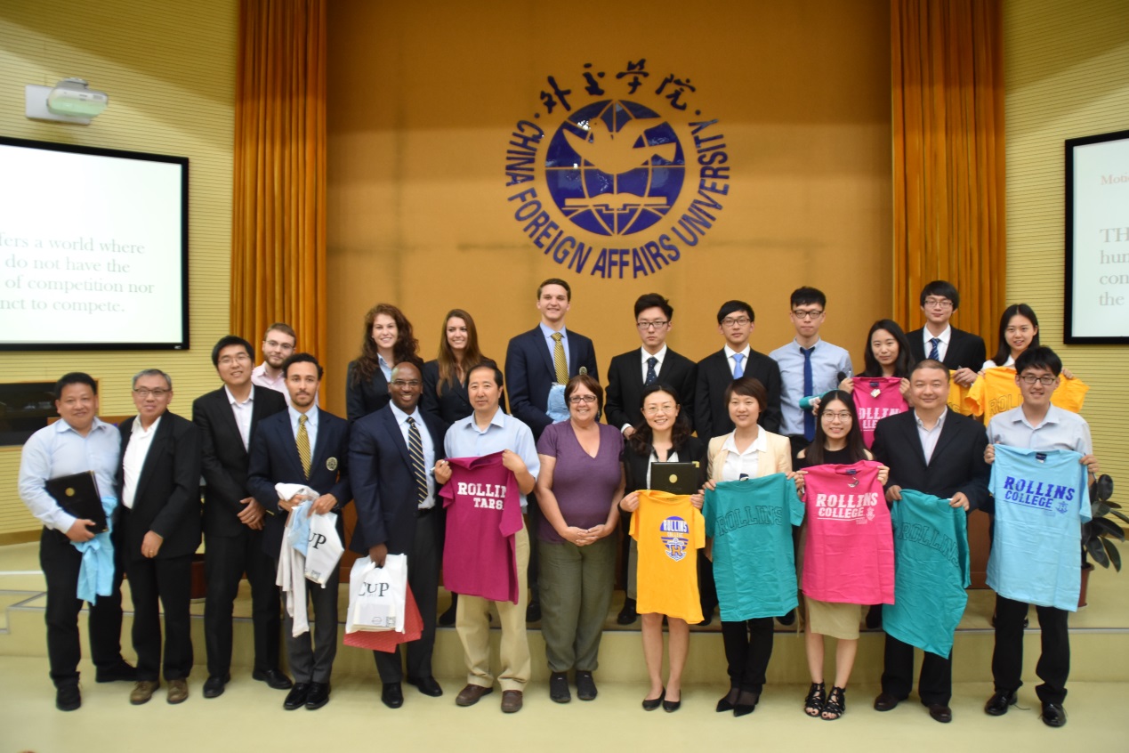 2016年5月18日,美国罗林斯学院(Rollins College)辩论队一行7人来到外交学院,对我院进行了为期一周的访问交流,英语系及英语辩论协会热情接待了美方代表团。