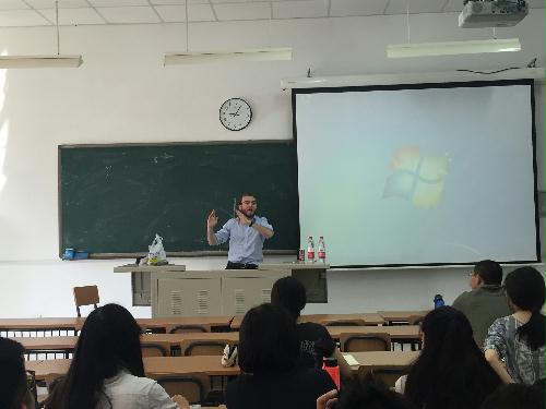 为了帮助同学们更好地深入理解英国议会制辩论,更加有效地提高辩论水平,2016年5月30日,英语系邀请到了世界著名辩手,2016年世界大学生辩论赛(WUDC)全程最佳辩手(overall best speaker),总决赛亚军英国人Michael Dunn Goekjian先生走进英语系《英语辩论》课堂,为同学们做了一场十分精彩的讲座,并在讲座结束后为学校英语辩论协会的成员进行了训练。讲座、训练内容深入浅出,大大提升了同学们对英国议会制辩论的理解。英语系辩论指导团队教师杨悦和冉继军副教授在讲座全程进行了旁听与指导。