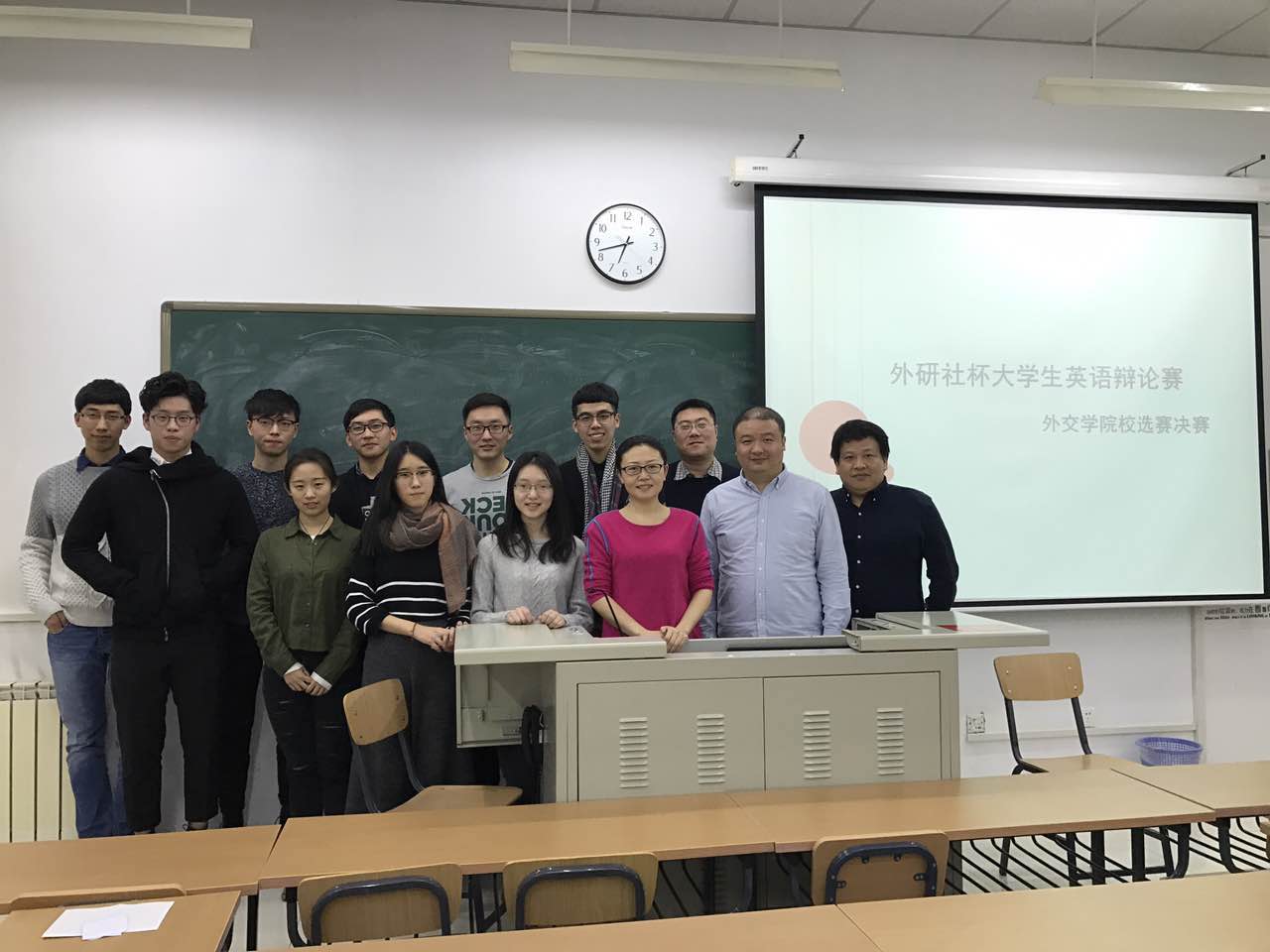 2016年12月21日下午,外交学院与中央财经大学在外交学院沙河校区联合举办了“第二十届外研社杯全国大学生英语辩论赛校选赛”初赛。两所学校各派出八支队伍参加了本次比赛。比赛分为三轮,辩题涉及城市化、教育制度和职业许可证制度等。经过激烈角逐,外交学院有两支队伍分获第一名(杜泽东、王俊良)和第二名(郑琦川、胡韵哲);另外两支队伍(唐杰、王羽珎;卢晓彤、朱润雨)也成功打入校选赛决赛。