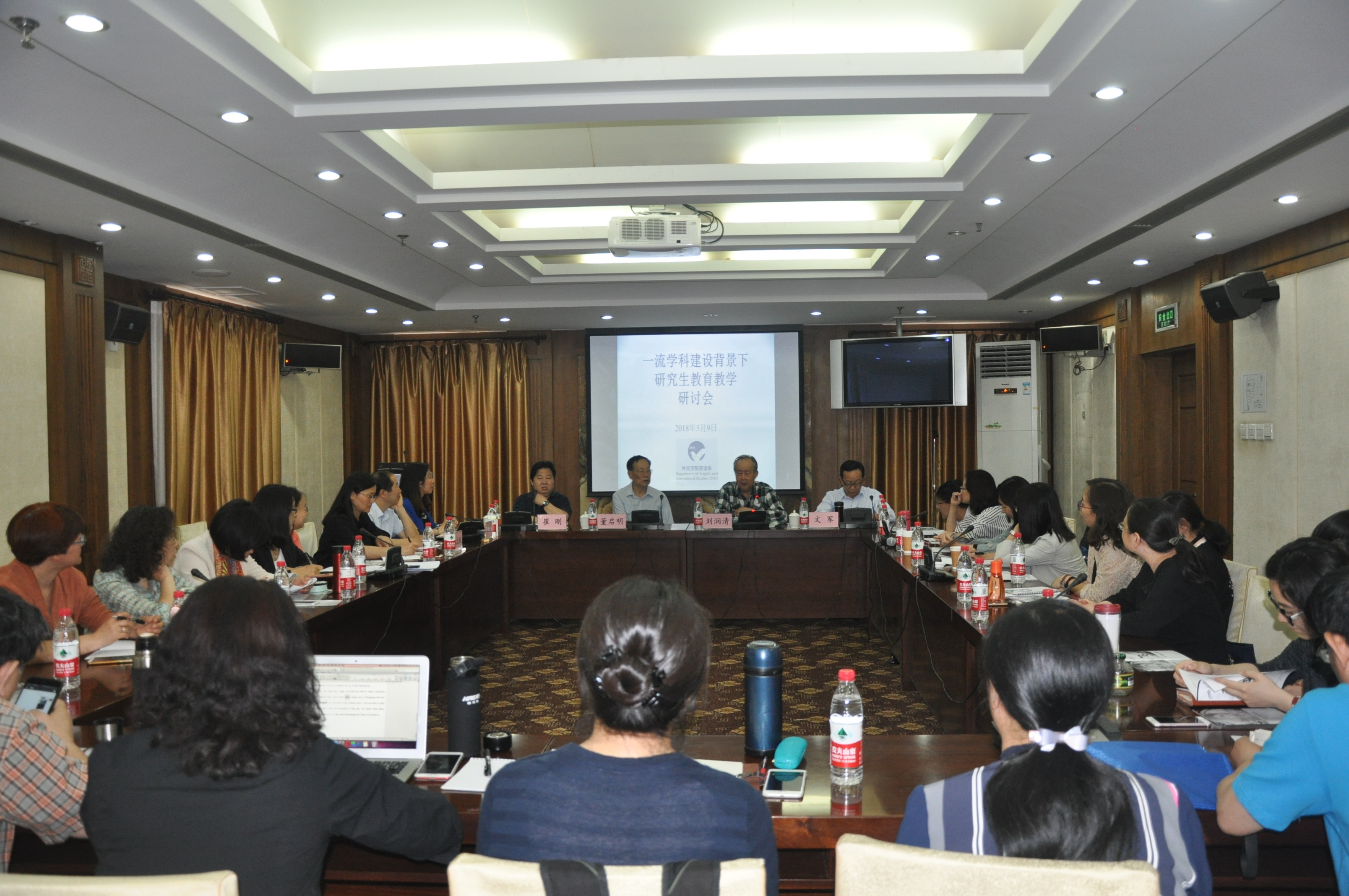 2018年5月9日下午,英语系在我院展览路校区国际交流中心1103会议室举办“一流学科建设背景下研究生教育教学”研讨会。北京外国语大学刘润清教授、清华大学崔刚教授、北京航空航天大学文军教授和首都师范大学董启明教授应邀参加了研讨会并做主旨发言。英语系主任石毅、英语系党总支书记胡水娟、英语系副主任郭立秋、汤华,以及部分英语系教师出席会议。会议由石毅教授主持。