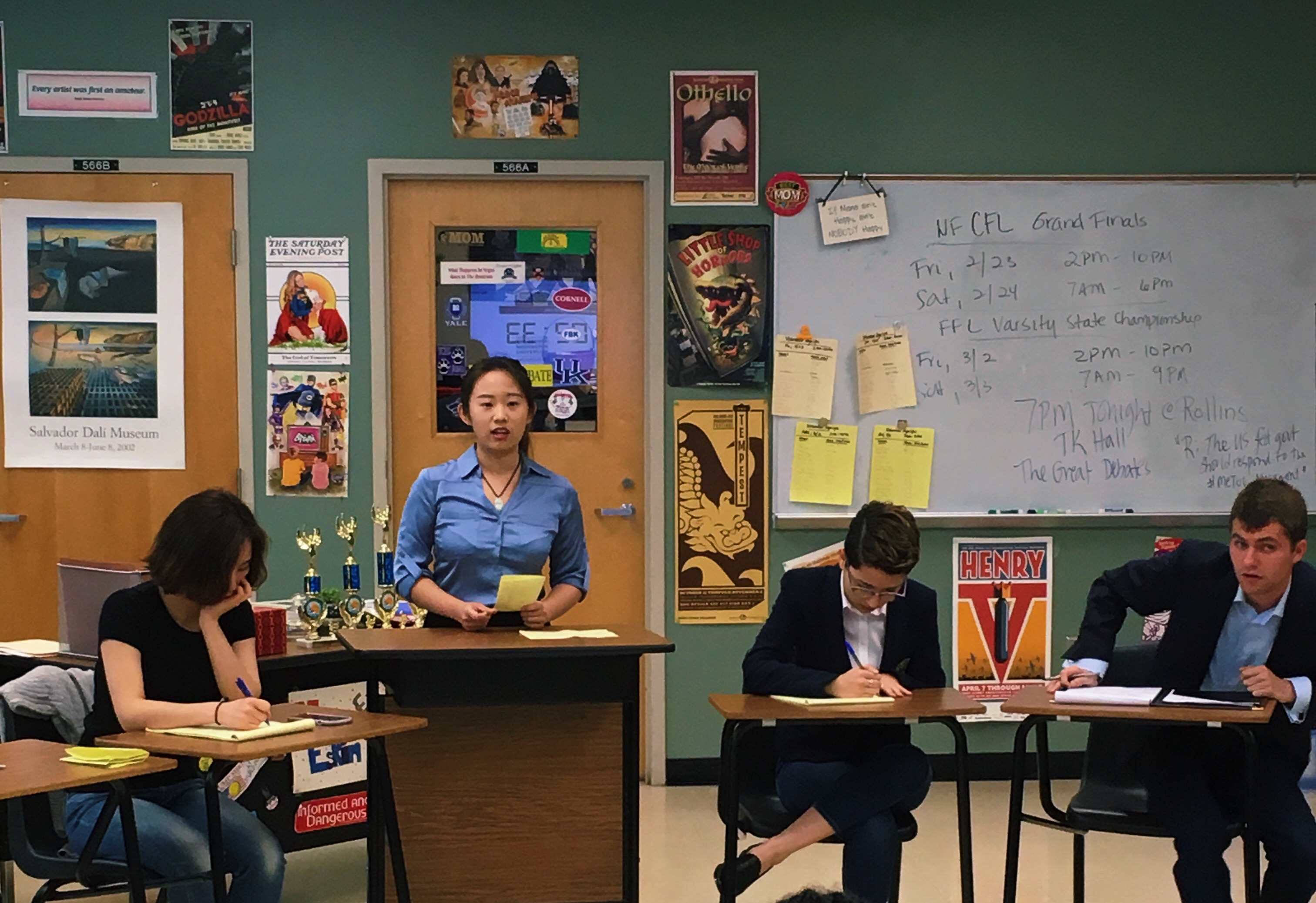 2018年2月18日至23日, 英语系组织英语辩论协会胡韵哲和郑琦川同学代表外交学院赴美国佛罗里达州罗林斯学院 (Rollins College),参加为期一周的辩论交流活动。此次活动由英语系创新实践训练中心辩论团队的指导教师杨强带队。