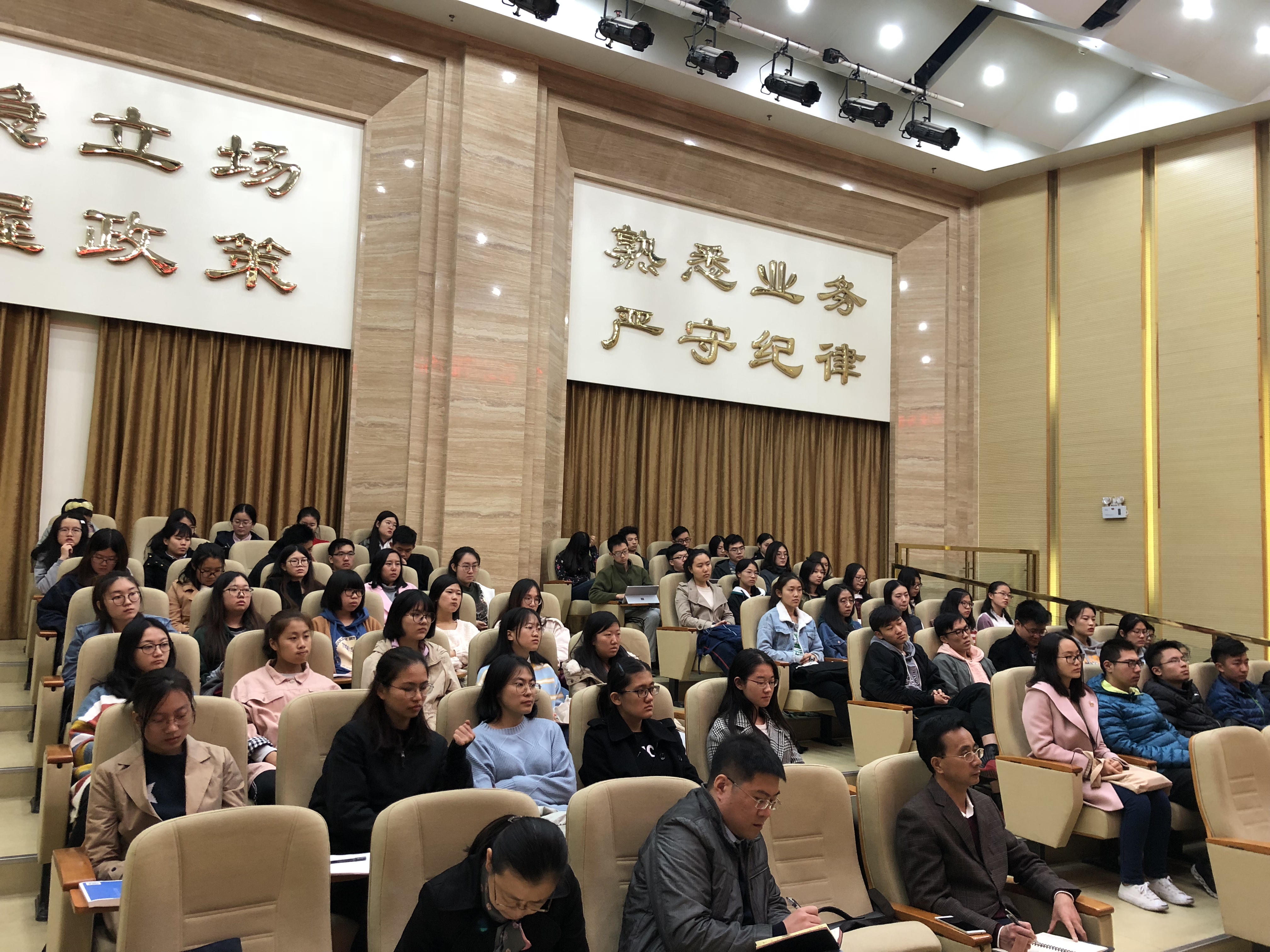 张京副处长认为,要成为合格的外交翻译人才,同学们首先要严格遵循十六字校训,培养过硬的政治思想素质和外交工作能力。她强调,同学们不仅要有专业的翻译知识,还要着重培养综合能力,提升多方面素质,开拓全球视野。张京副处长结合自己学生时代的生活和在外交部的工作经历,强调了英语演讲、辩论比赛等活动对个人思维能力、心理素质和临场反应能力训练的重要性,鼓励同学们积极参加学科竞赛,积累大赛经验。张京副处长充分肯定了2016级英语系“外交翻译专训班”同学们在今年英语专业四级考试中取得的好成绩,对同学们寄予厚望。