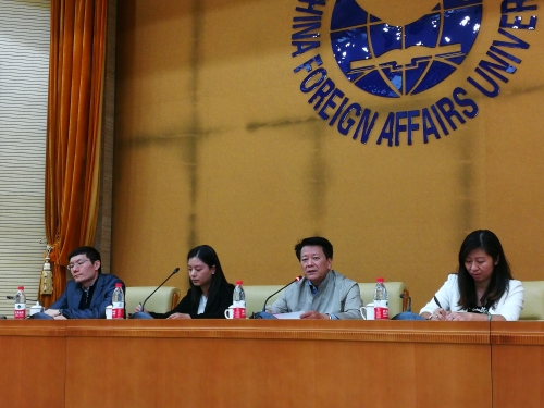 2018年10月24日下午,外交学院党委书记齐大愚大使、英语系校友、外交部翻译司培训处张京副处长和中国外交培训学院教务部高明主任(原外交部干部司考录处副处长)与80余名英语系2017、2018级翻译专业学生在外交学院沙河校区图书馆报告厅进行座谈交流。本次座谈会的主题是“学习贯彻全国教育大会精神,立志成为优秀外交外事人才”。英语系主任石毅教授主持座谈会,院党办王少华主任、学生处王胜乾处长、院团委王华迪书记和英语系部分教师代表参加了座谈。