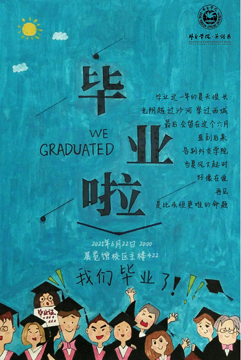 在游走的记忆中回望,在欢笑泪水中铭记,在深深祝福中展望。为使英语系每位毕业生都能感受到来自母校的温暖和关怀,能够以更加昂扬的精神面貌踏上崭新的人生旅程。在2021届毕业生即将离校之际,英语系于6月22日晚在展览路校区主楼422教室开展“青春逐梦·季忆留夏”2021届毕业晚会,活动面向英语系2021届全体毕业生和教师代表。