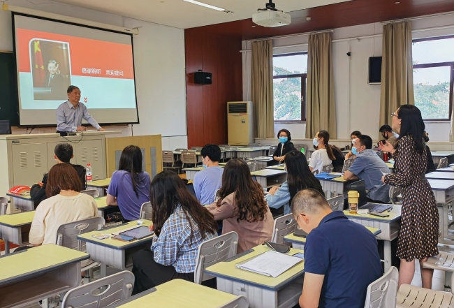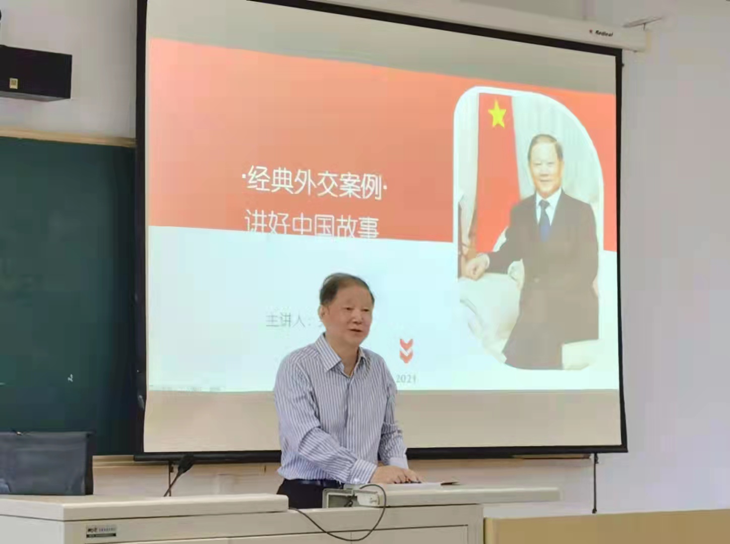 为深化党史学习效果,切实推动“学史力行”,9月15日下午孙玉玺大使应邀为英语系全体师生党员和入党积极分子做主题为“讲好中国故事——经典外交案例剖析”的党课。党课由英语系党总支书记季玲同志主持,孙吉胜副院长、英语系全体教职员工、学生党员和入党积极分子约80人参加。