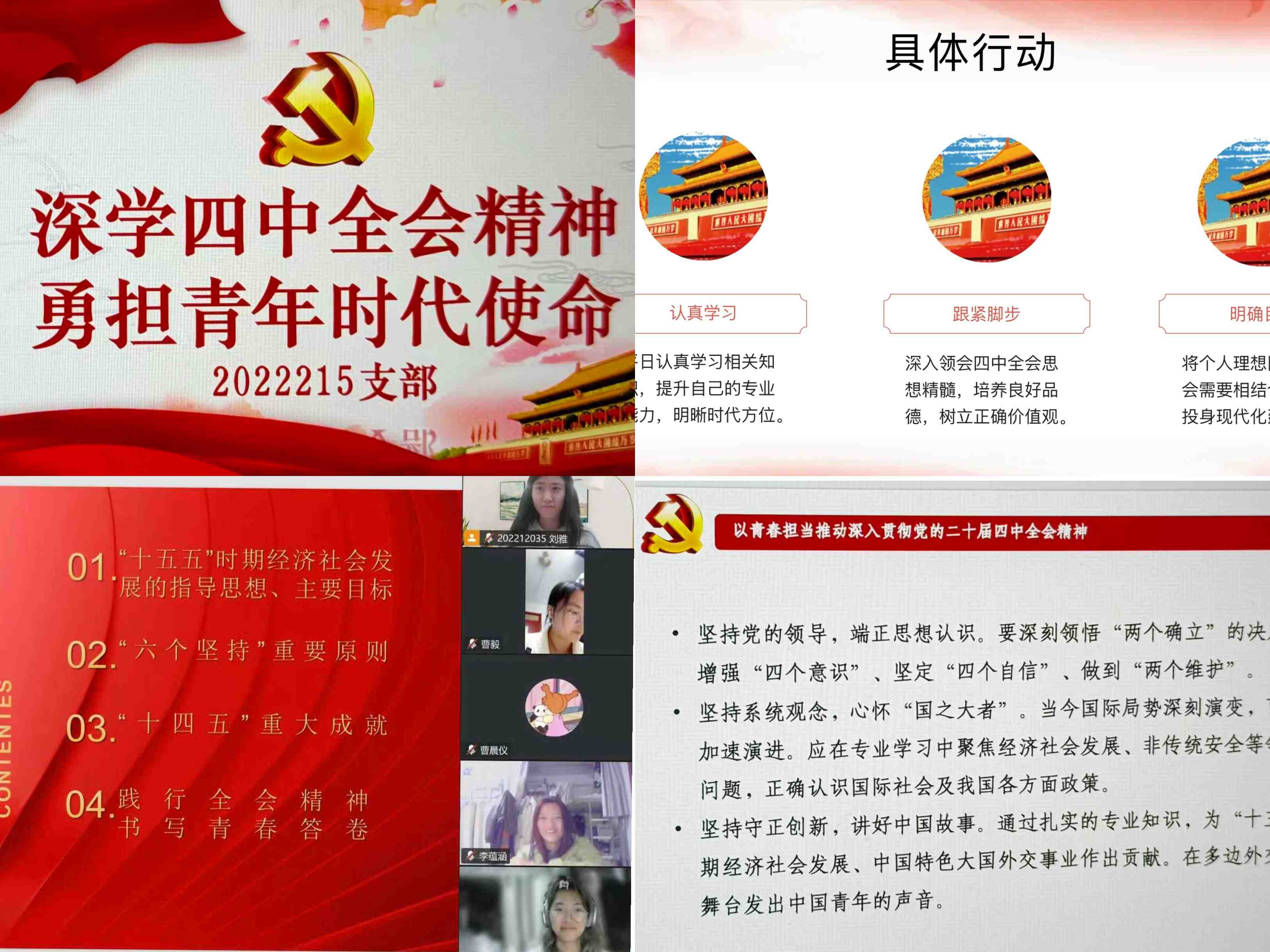 为引导广大团员青年深入学习贯彻党的二十届四中全会精神,准确把握“十五五”时期国家发展的指导思想与战略目标,英语系团总支于2025年10月28日至11月10日组织各班级团支部开展了“深学四中全会精神,勇担青年时代使命”主题团课活动。