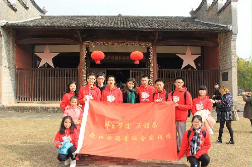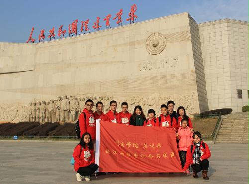 英语系学生会此次社会实践活动开展了“重温红色历史,践行社会主义核心价值观”的红色革命教育活动,同学们沿着革命先烈们的足迹,走进共和国的光辉历史,重温党的光荣传统。