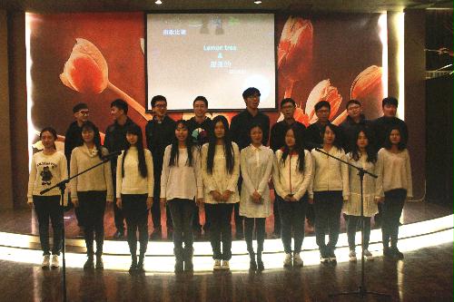 比赛要求每班选唱中英文歌曲各一首。各班同学积极准备,精心编排,最终用深情的歌声,表达着自己一年来对家人、老师、同学、母校的感恩之情。尤其值得一提的是,2014211班班歌《play6》,是由本班林雨扬同学原创词曲,代表班级献给英语系的感恩节礼物。阵阵歌声如天籁,声声祝福似星点。歌声承载着感恩,承载着友谊,陪伴英语系师生度过了一个难忘的夜晚。
