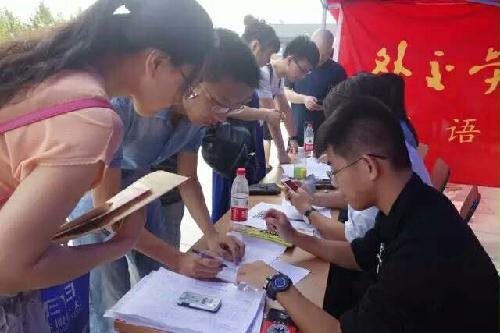 2016年9月2日是外交学院2016级新生的报到日。早上6点半,英语系学生会的同学们在沙河校区礼堂前广场上设好了接待站,做好了一系列的准备工作,迎接新生的到来。随后英语系学生会的同学们开始陆续帮助新生办理有关手续,引导新生去相应办理地点,并耐心解答新生及家长的各种问题。英语系辅导员李玉新老师、曹如茵老师也一早就来到现场,与在场学生会同学们一起迎接新同学,并做出相应指导。新生们陆续前来报到,迎新工作顺利进行。