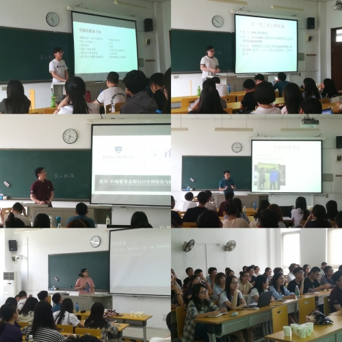 毕业生代表们分别以考研、保研、就业和外交部遴选为主题,介绍了他们准备过程中的经验和应试技巧,分析了各个选择的不同要求,并且针对不同年级的学弟学妹给予了不同的建议。其中,郭语同学介绍了她考取北京外国语大学高级翻译学院硕士项目的经验,王俊良同学介绍了自己的保研经历以及清华大学•约翰霍普金斯大学双硕士项目的申请要求,肖世尧同学则详细地介绍了自己选择新华社体育部的原因和自己的经历,庄泽锴同学教给了大家一些毕业生秋招的小策略和需要提前做的准备,杜泽东同学详细列出了通过外交人才选拔考试进入外交部所需要准备的各项内容。最后,各位学长学姐与在座同学进行了积极的互动交流,回答了他们的问题。