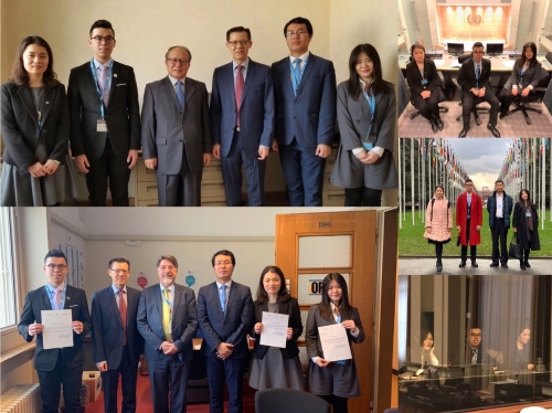 实习期间,我系学生观摩了万国宫的被动安全工作组会议、联合国难民署自愿认捐声明会议和联合国人权理事会70周年庆祝活动“180秒我的人权故事”颁奖活动,并在哑箱按照现场抽签顺序真实模拟会议同传。在会议结束之后,秦肖斌老师从翻译的整体风格到漏译错译的每个细节都进行了细致个性化的点评。模拟实战之外,三位同学还接受了联合国日内瓦总部会议管理部口译司前任司长李正仁、口译处中文科科长竺小华、资深议员黄迅余、专职笔译员祁琳等老师面对面的指导,就口译训练、同传实战、职业发展规划和机器翻译等热门话题进行深入的探讨。