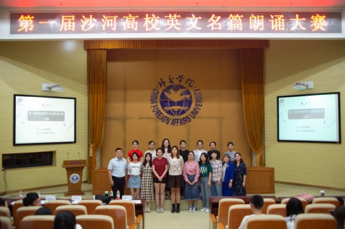 2019年5月22日下午,由外交学院英语系主办、外交学院英语系学生会承办的第一届沙河高校英文名篇朗诵大赛决赛在外交学院沙河校区图书馆报告厅圆满结束。经过5月15日的校内赛选拔,来自外交学院、北京航空航天大学、中央财经大学的12位选手参加决赛。外交学院英语系许宏晨老师、吕惠老师、宋平老师、中央财经大学李丽老师、外交学院外籍教师Laraine Chamberlain出席本次比赛并担任评委。