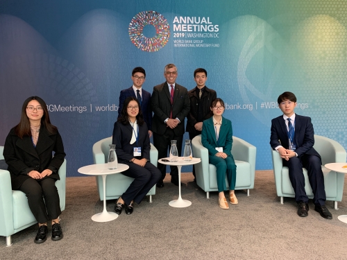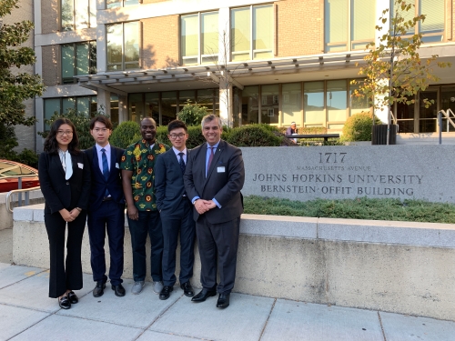 2019年10月13日至22日,应世界银行和约翰•霍普金斯大学邀请,英语系选派本科三年级李昊鹏、辛卓凡、胡可欣、邓妍、鲁志远、景子尧6名同学赴美国华盛顿观摩世界银行年会并与约翰•霍普金斯大学进行交流。本次活动由外交学院外籍教师Marcus De Freitas教授带队。